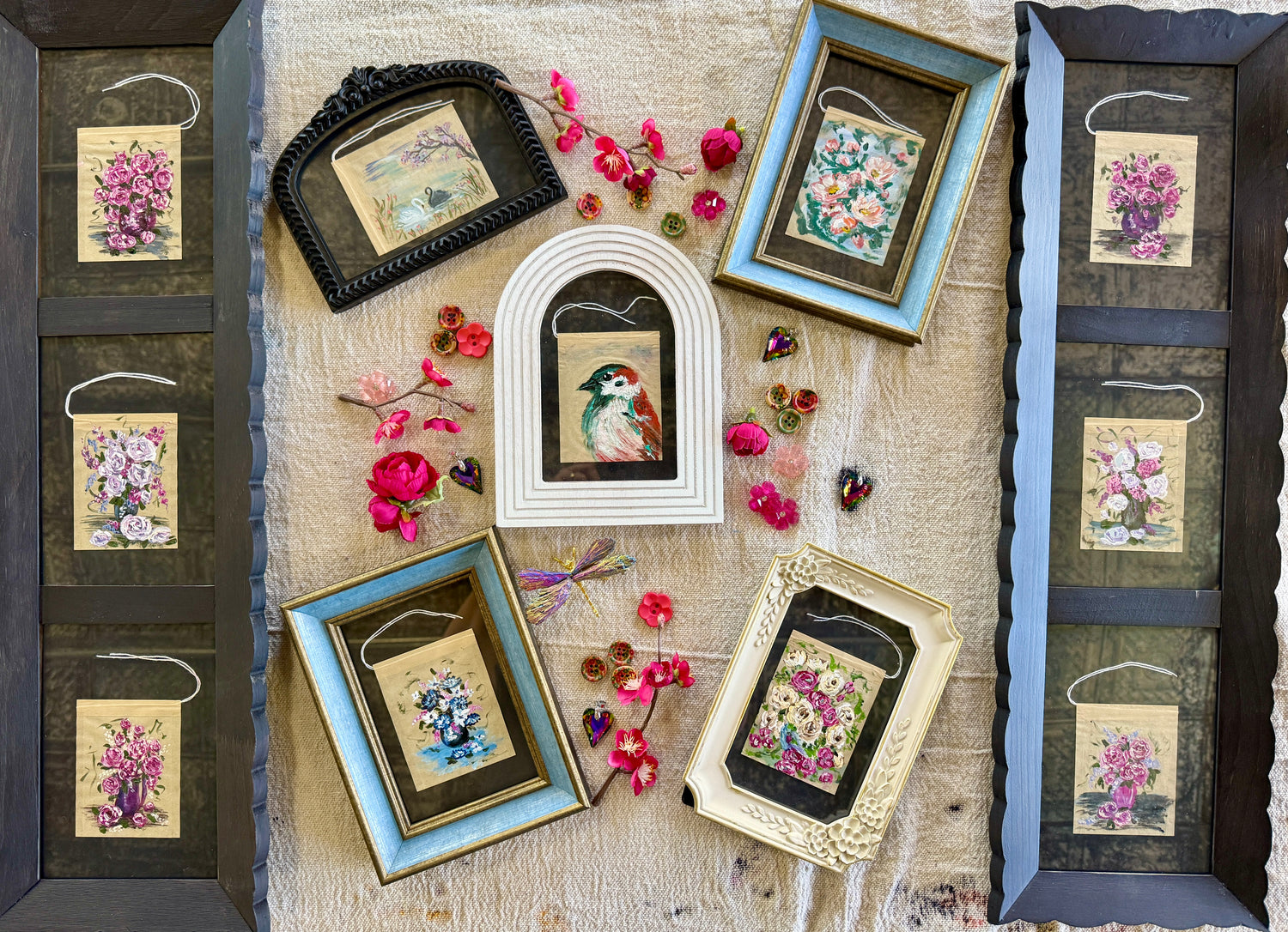 These tiny works are painted on brand-new, empty tea bags...carefully prepped, dried, and transformed into miniature canvases filled with color, texture, and story.