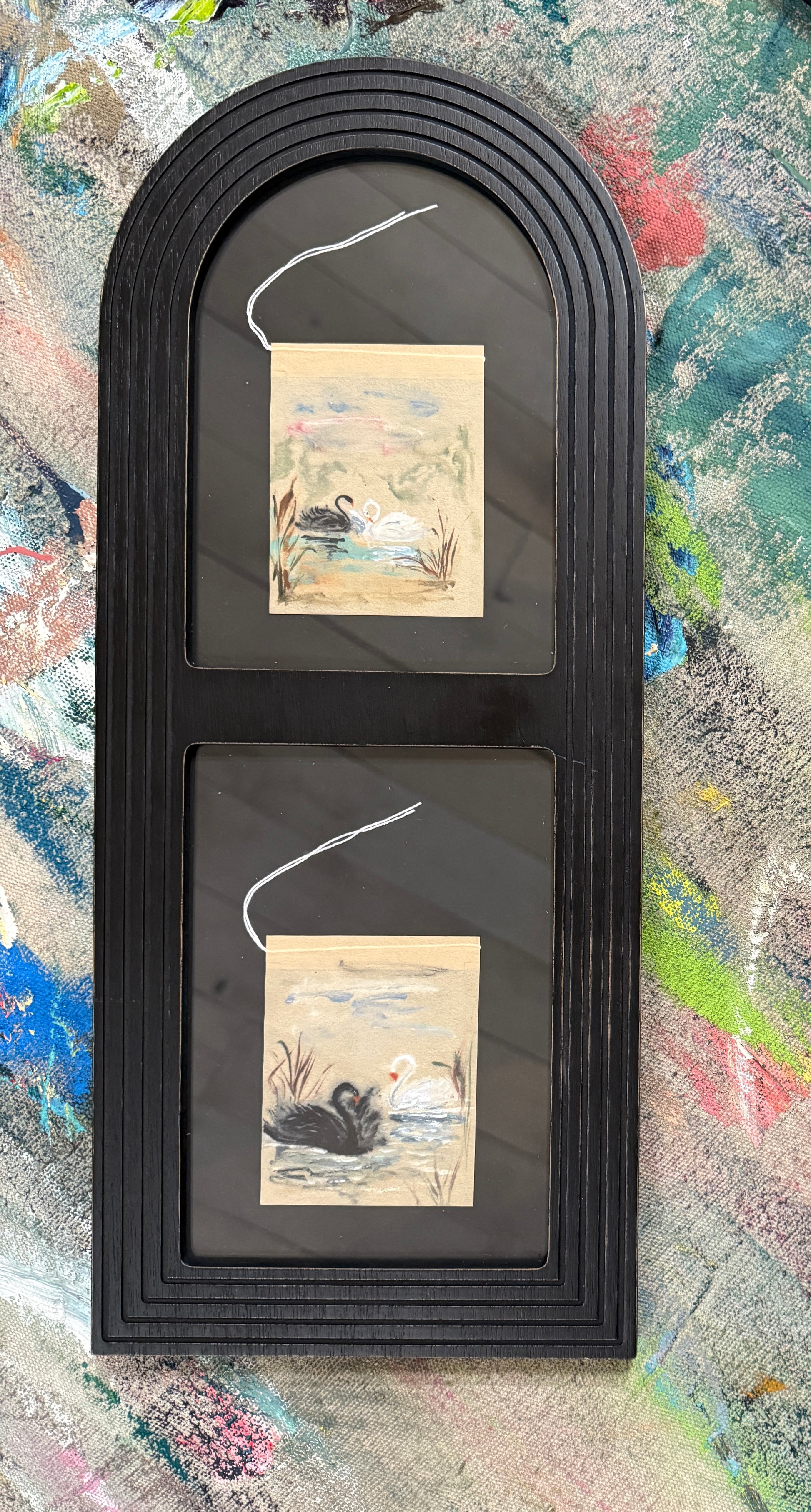 Framed Tea Bag Art – “Together” | Dual Swan Pair Paintings on Upcycled Tea Bags