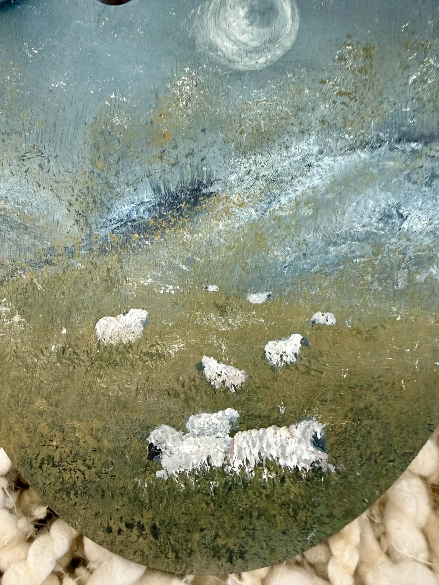 Night Watch is an original hand-painted palette keepsake inspired by the sacred stillness of the shepherds watching their flocks by night...unaware that heaven was about to interrupt the ordinary.
