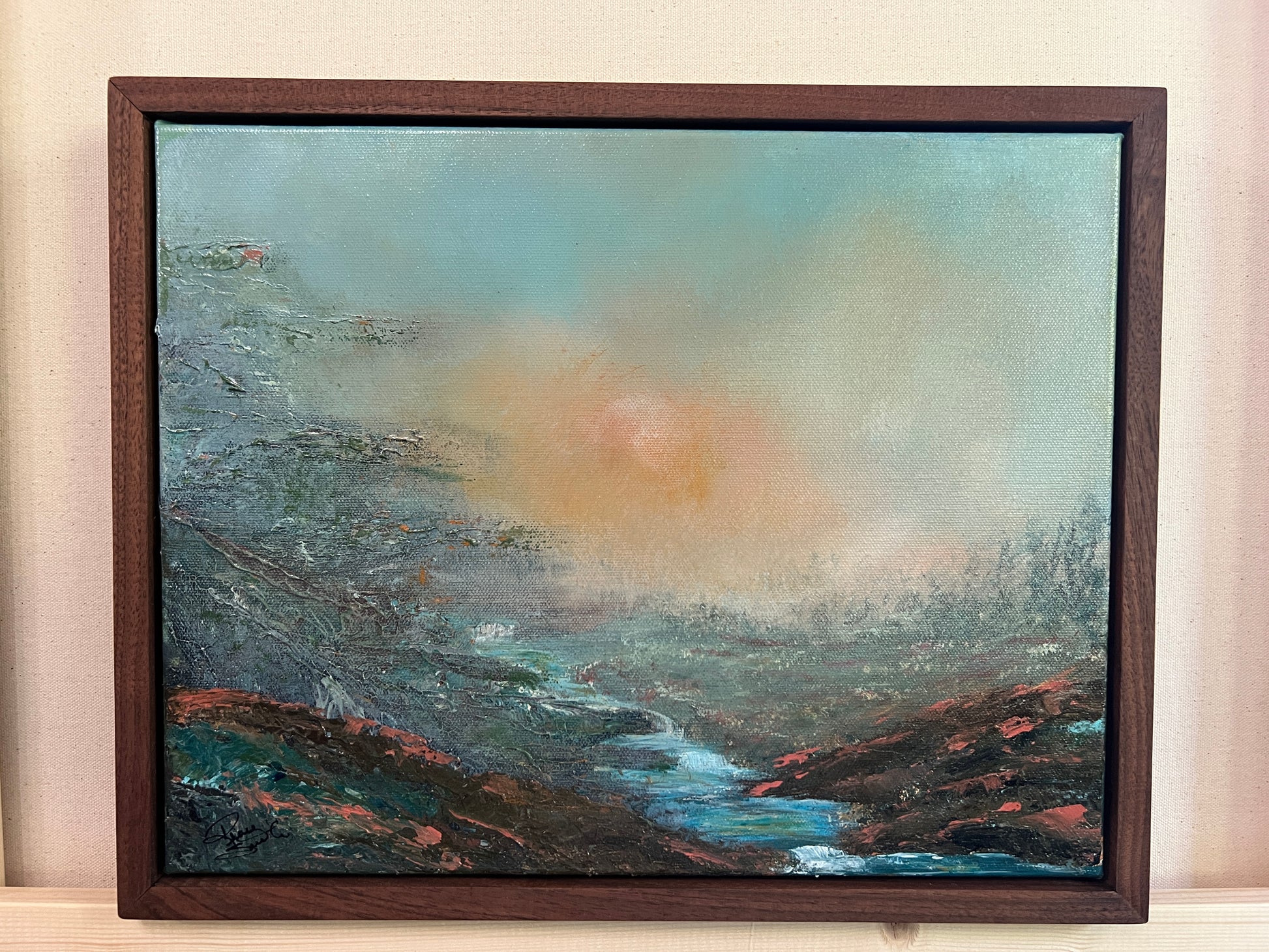 This piece is framed in a custom walnut float frame and sealed for protection. It’s a reflection of that sacred in-between… where surrender meets expectancy and grace gently leads us forward.