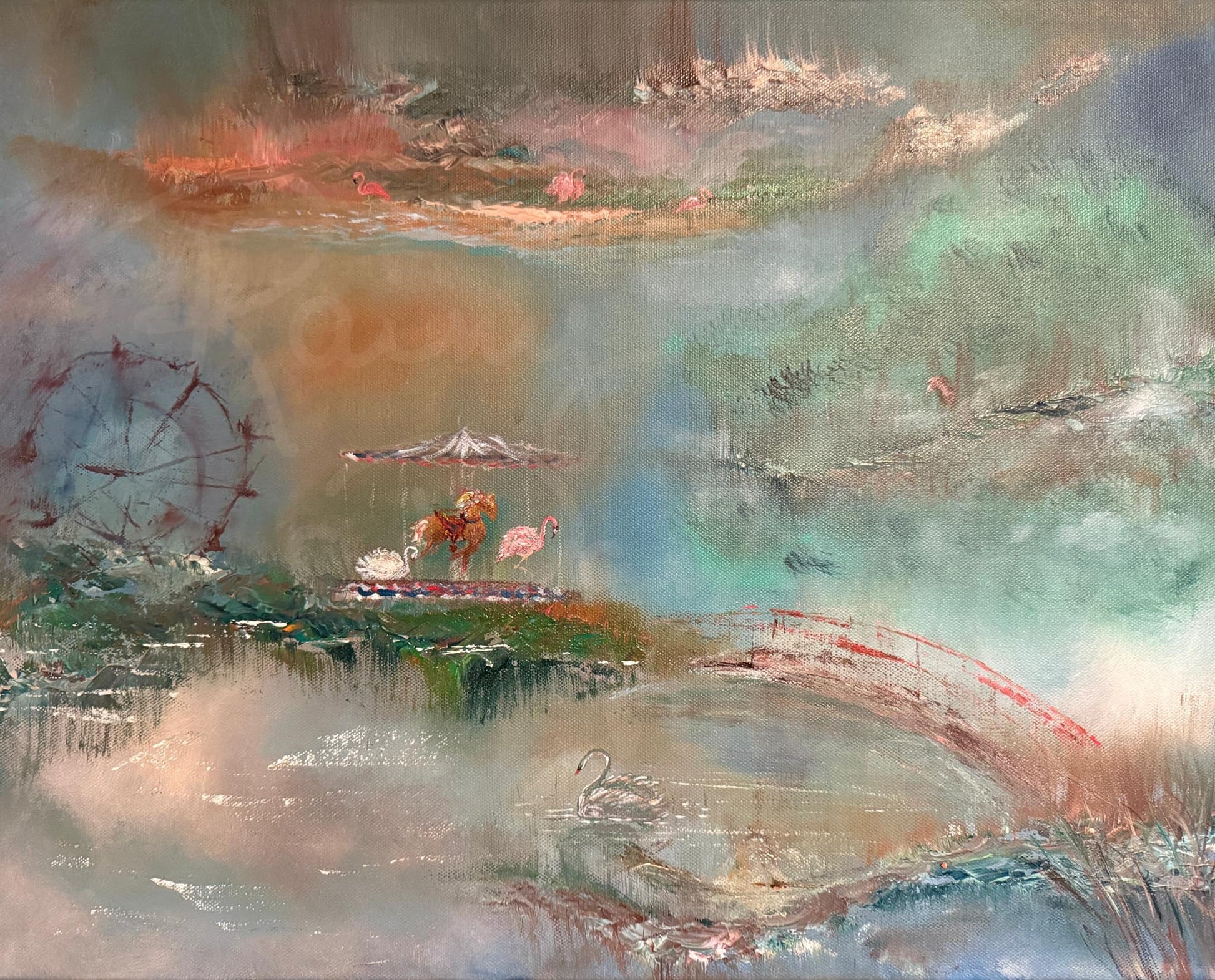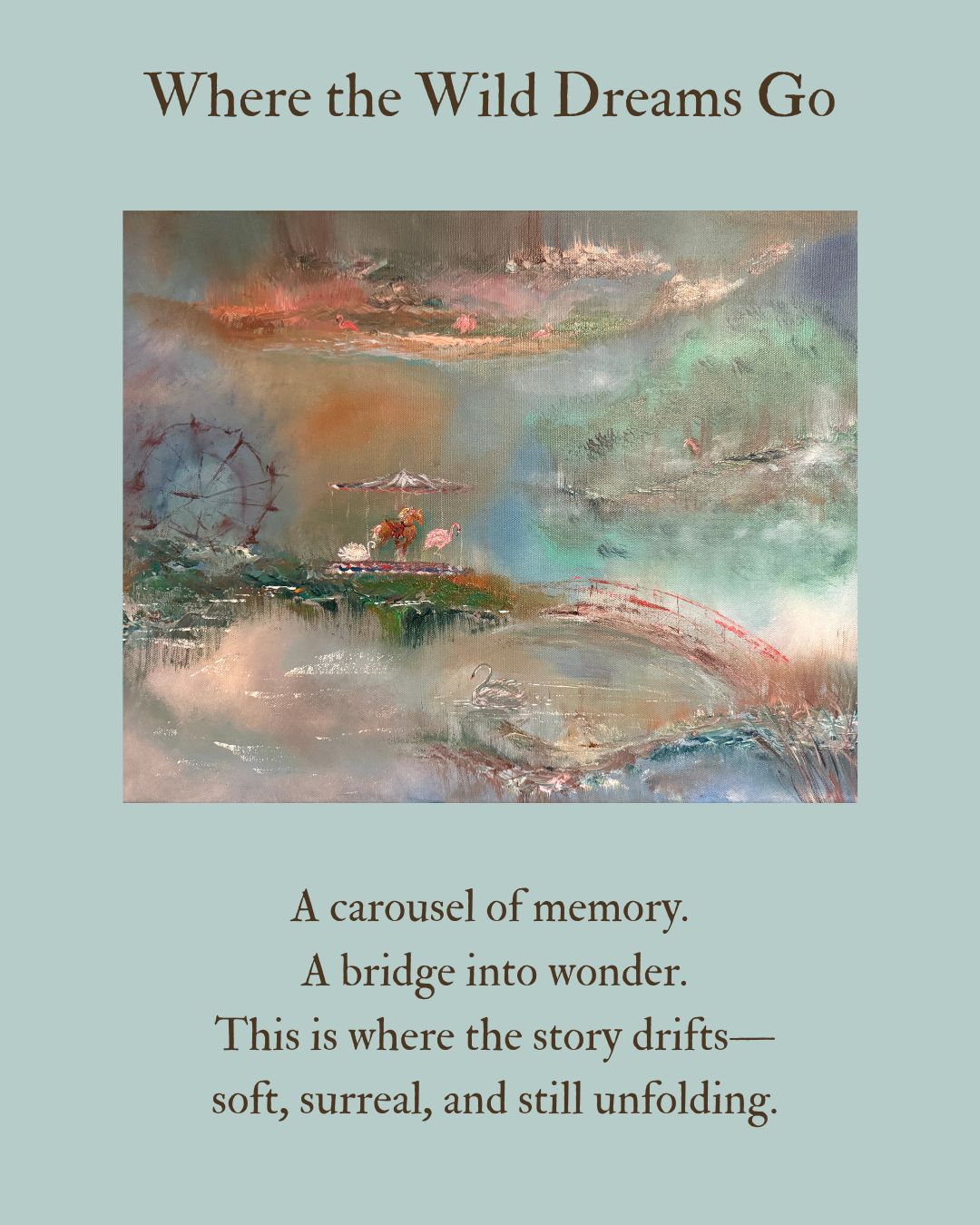 Beneath the golden glow of carnival lights, dreams take flight on painted horses, stretching beyond the carousel into the unknown. Where the Wild Dreams Go is an invitation to hold onto the magic of childhood, to believe in the impossible, and to embrace the journey. With dynamic movement and moody color contrasts, this piece is a tribute to wonder and possibility.