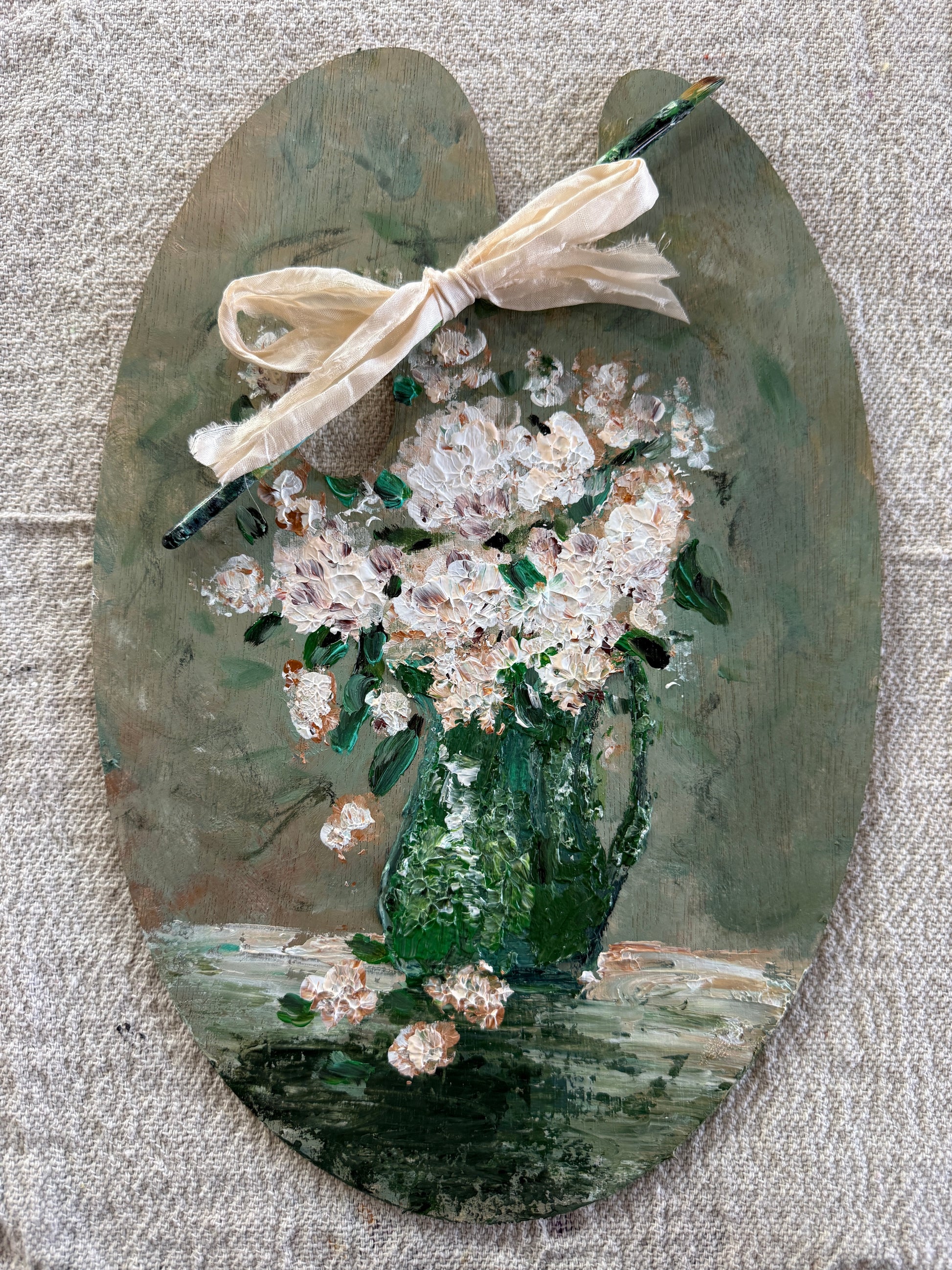 This palette keepsake is an original floral study painted slowly and without a fixed plan, allowing the colors and forms to develop naturally.