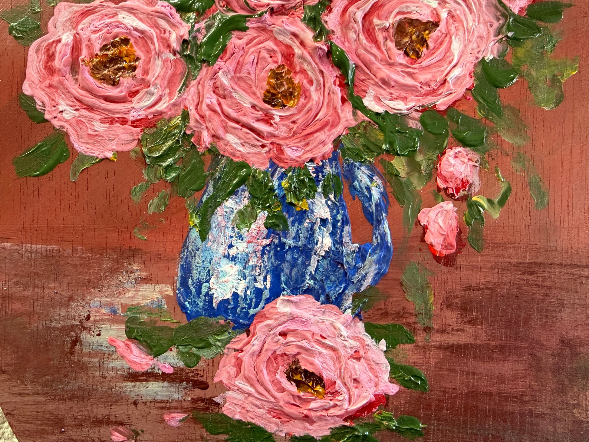 The roses brought a richness and certainty that didn’t need refining. The palette leaned into contrast and presence, becoming something more defined than initially planned. Sometimes the work decides where it’s going, and you simply follow along.