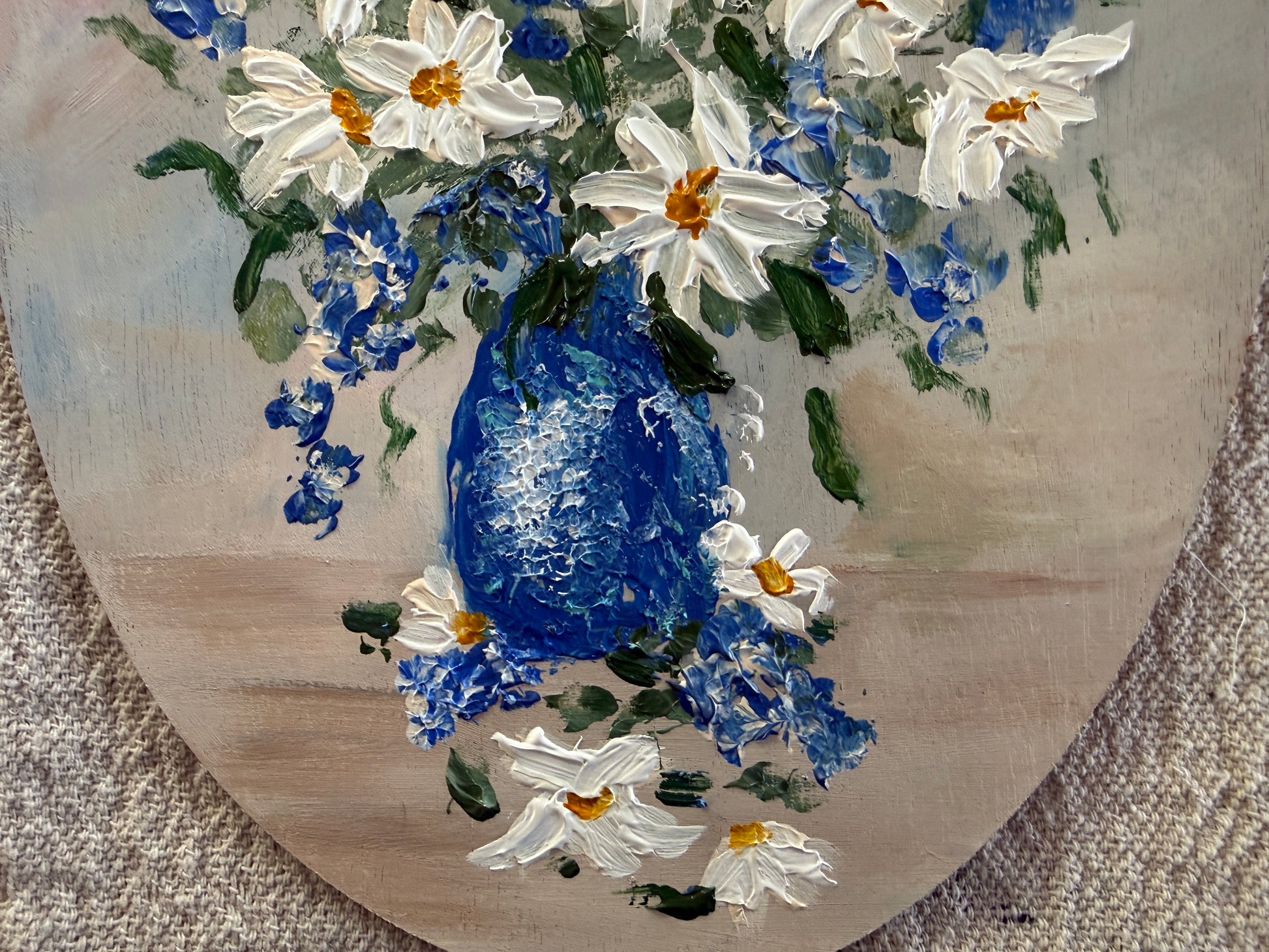The daisies and blues came together with ease, forming a piece that didn’t require reworking or second-guessing. The composition settled naturally, as if it had been heading there all along. Some moments arrive without announcement — and suddenly, there it is.