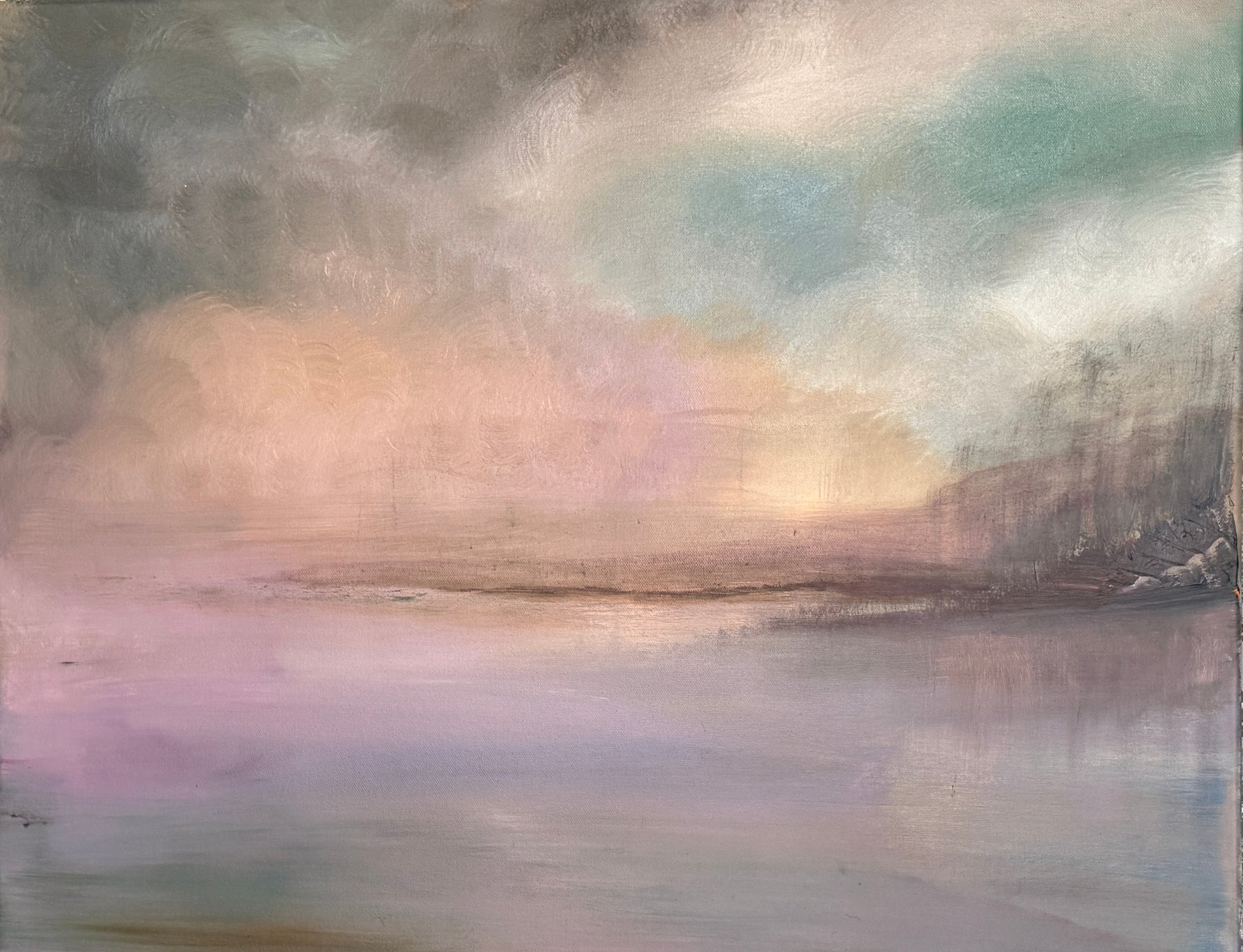 Light, land, and sky blend gently across the surface, allowing the viewer’s imagination to fill what isn’t defined. This painting invites stillness, reflection, and a slower way of seeing.
